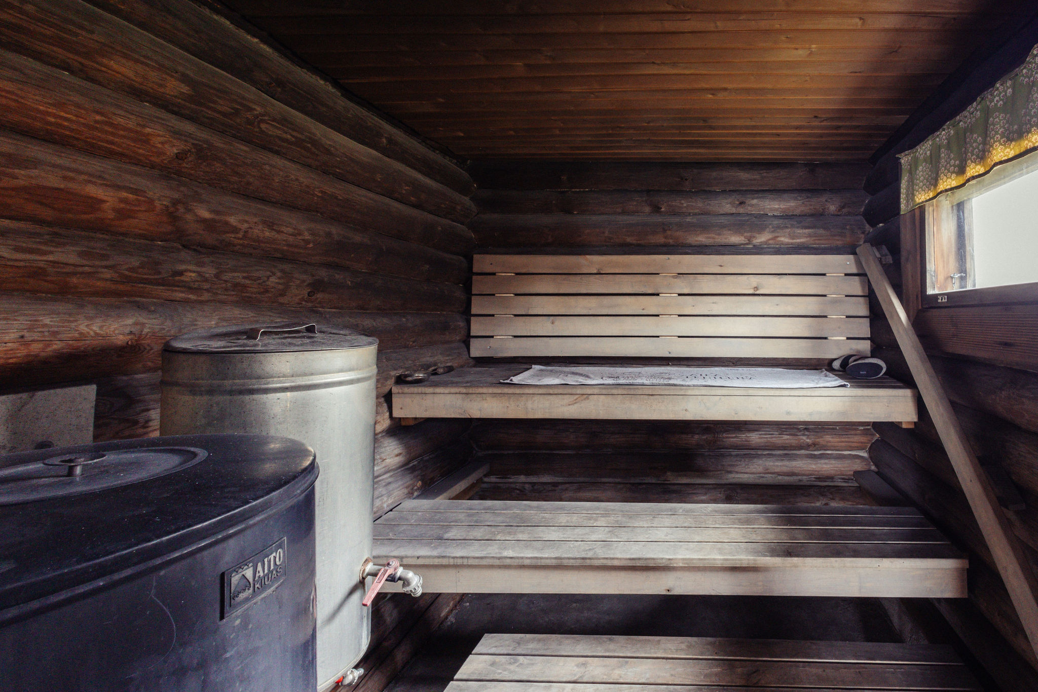 Tilan rannalta löytyy perinteinen puilla lämmitettävä rantasauna oleskelutiloineen; takka, kamina sekä keittiönurkkaus, josta löytyvät jääkaappi, kahvinkeitin, mikroaaltouuni sekä induktiolevy.